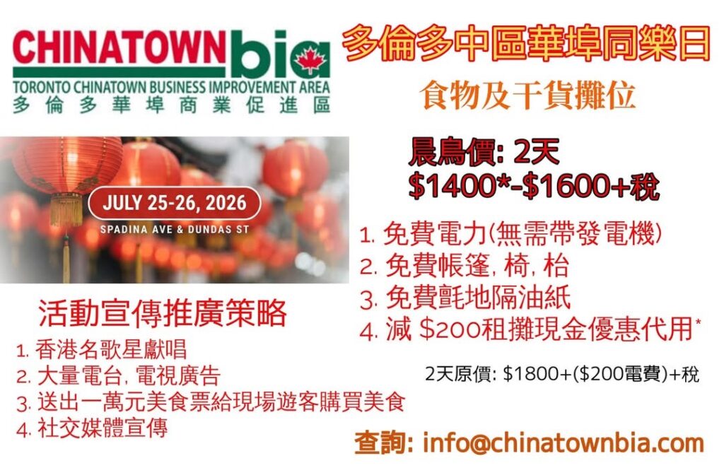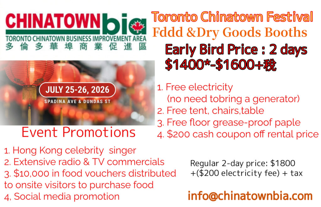 Now in its 26th year, the Toronto Chinatown Festival returns to Spadina Avenue for a vibrant weekend of culture, food, and celebration!